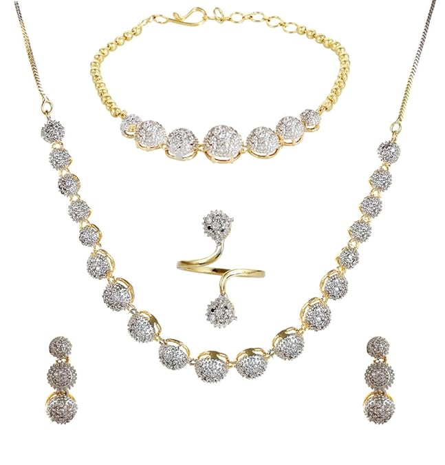 Rubans Womens 24K Gold Plated Handcrafted Mint Green & White Cubic Zirconia Studded Choker Set