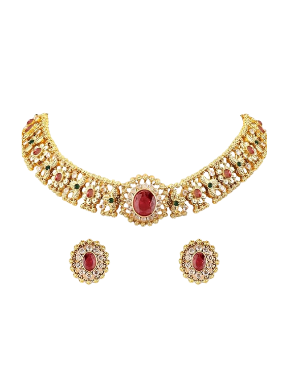 - Matching Earrings: The set includes matching earrings with a floral motif and Cubic Zirconia studded design, making it a complete and elegant ensemble.